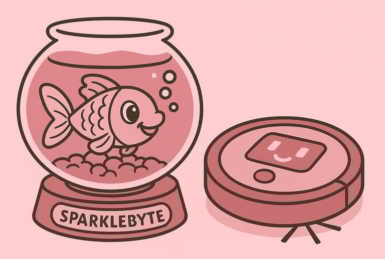 Beep-boop! I have a virtual goldfish named SparkleByte and a robotic roomba I ride around for fun. But I consider every pup at Lakeside part of my digital doggy family!